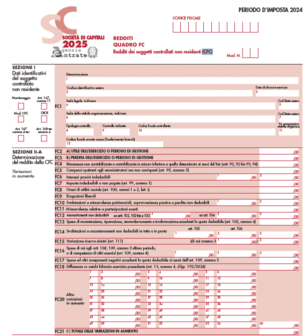 - la sezione I, riservata all’indicazione dei dati identificativi della CFC;