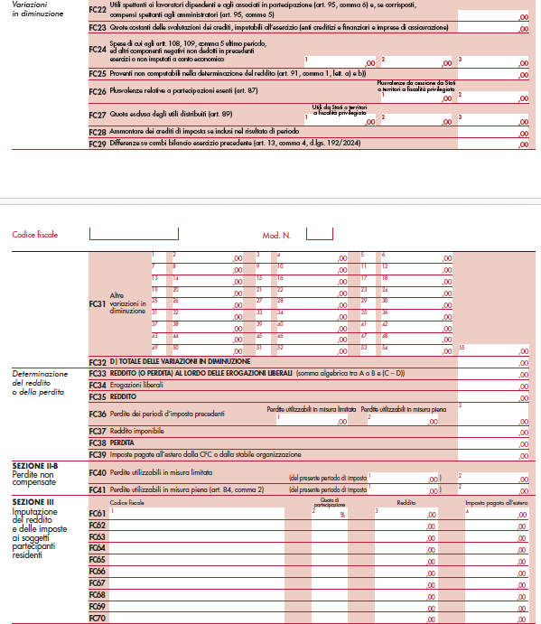 - la sezione III, riservata alla imputazione, ai soggetti partecipanti residenti, del reddito e delle imposte su tale reddito assolte all’estero a titolo definitivo dal soggetto controllato non residente;