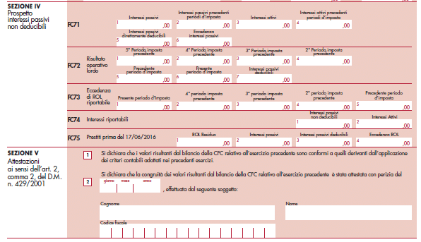 - la sezione IV, riservata al prospetto degli interessi passivi non deducibili;